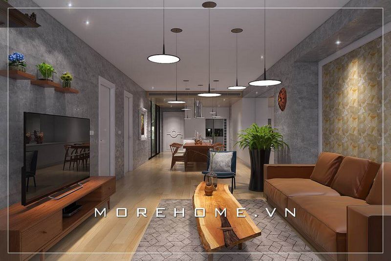 Thiết kế nội thất phòng khách chung cư với đồ nội thất gỗ công nghiệp hiện đại