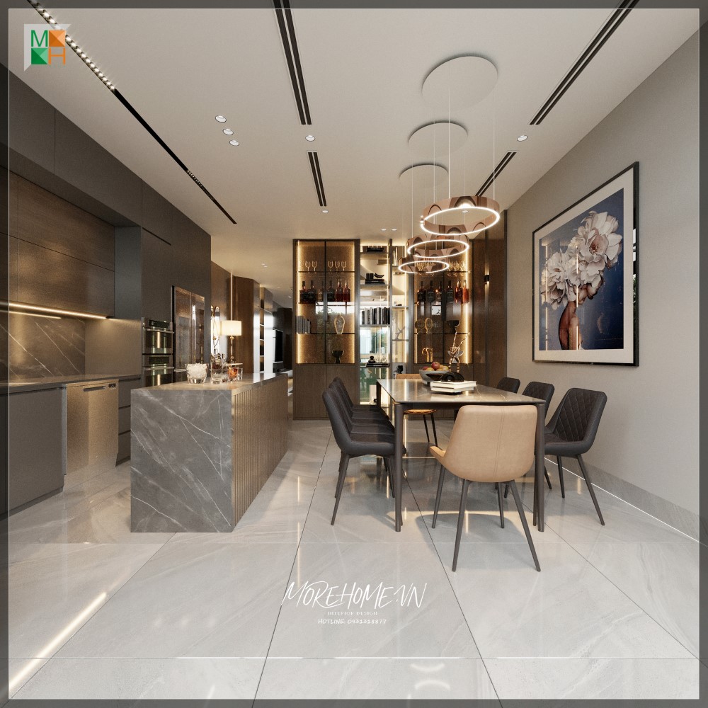 Mẫu đèn thả bàn ăn pha lê kiểu dáng mới lạ đã tạo nên vẻ đẹp cuốn hút, sang trọng cho không gian đương đại.