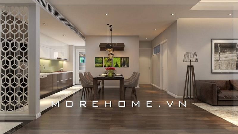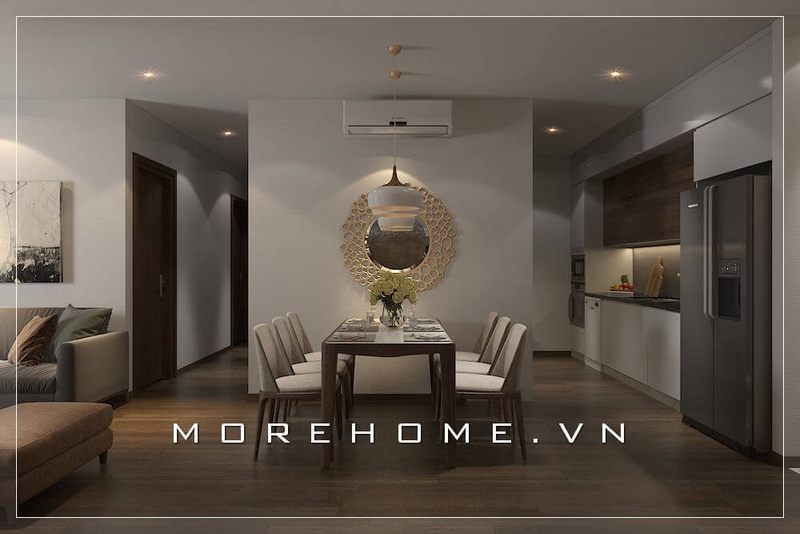 Thiết kế nội thất phòng ăn liền bếp hiện đại, đơn giản và tiện nghi cho nhà chung cư