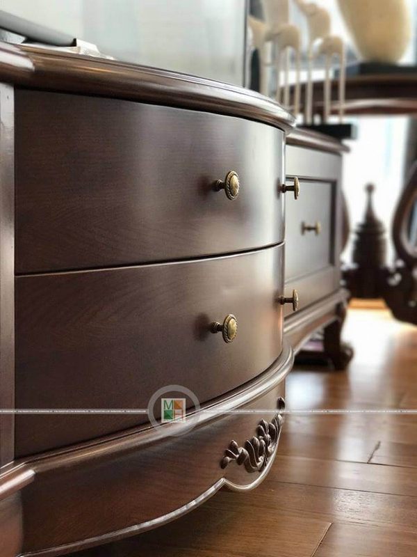 Mẫu kệ tivi gỗ óc chó tân cổ điển sang trọng cho phòng khách biệt thự Ecopark _ Công trình thi công nội thất biệt thự đẹp tại Hưng Yên